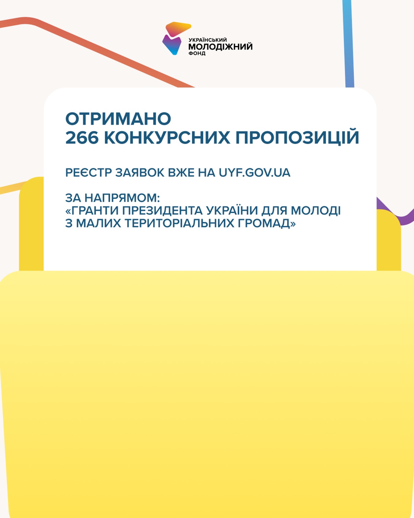 Реєстр уже на сайті, перевірити свою заявку можна за посиланням: https://uyf.gov.ua/…/rejestr-zarejestrovanix-proektiv…